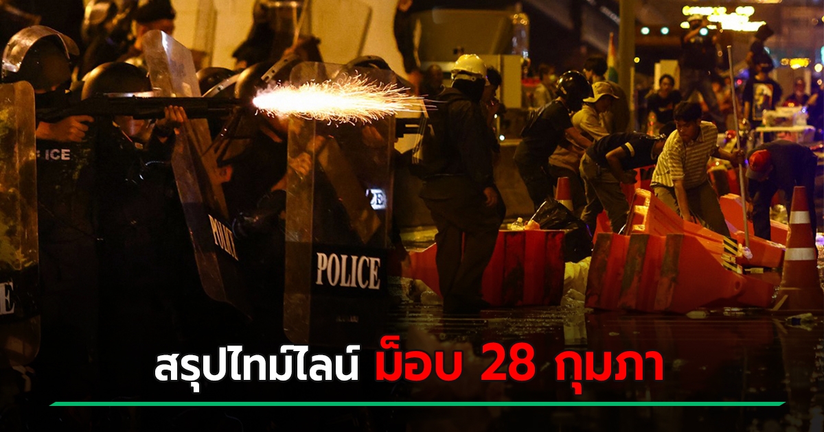 ไทม์ไลน์ ม็อบ 28 กุมภา ปะทะตำรวจ ตั้งแต่ต้นจนจบ พบใช้กระสุนยาง - แก๊สน้ำตา