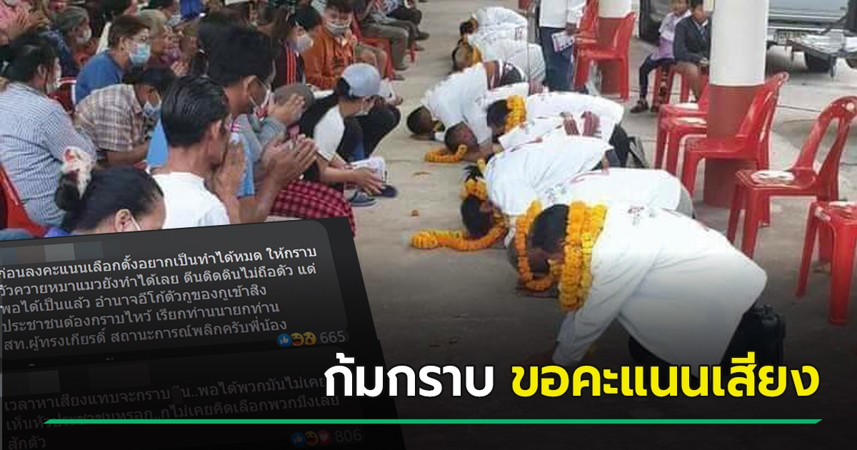 แชร์สนั่น ! ผู้สมัครเลือกตั้ง ส.ท. ก้มกราบประชาชน คนแซว...ตอนหาเสียงทำได้ทุกอย่าง