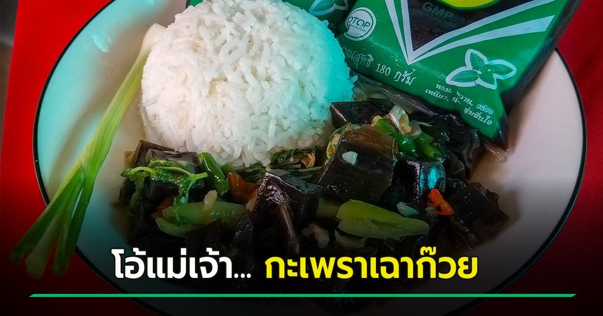 ฮือฮา ! หนุ่มผุดเมนู ผัดกะเพราเฉาก๊วยชากังราว เคี้ยวหนึบ ๆ คล้ายเนื้อปลาหมึก