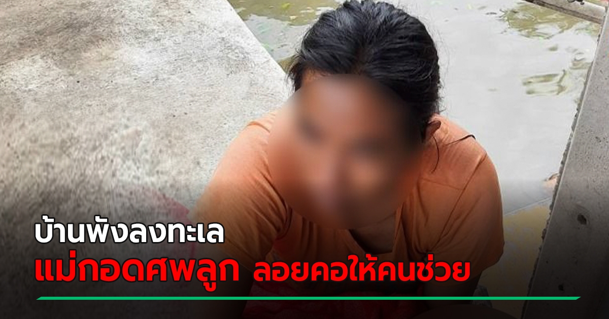 แม่ใจจะขาด บ้านถูกคลื่นซัดลงทะเล หนีมาแล้วแต่ต้านไม่ไหว ลูก 7 ขวบตายคาอก