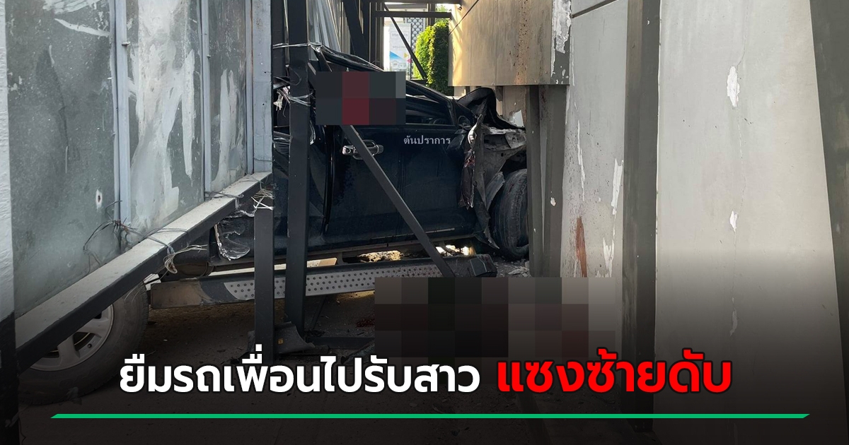 หนุ่มยืมรถเพื่อนขับไปรับแฟน เปรี้ยวจัดซิ่งแซงซ้ายแต่ตกขอบทางชนดะคันหน้า - กำแพงดับ
