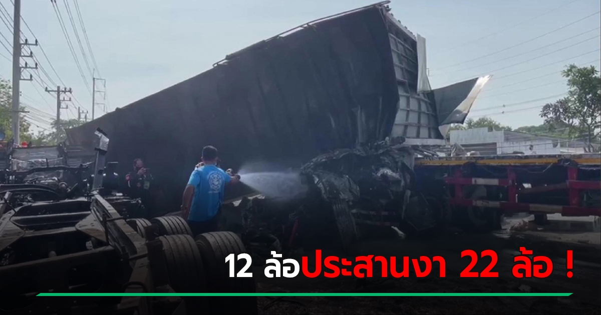 ยักษ์ชนยักษ์ รถพ่วงประสานงากลางถนน เสียงระเบิดดังตู้ม-ไฟลุก คนขับกระเด็นออกดับ 1