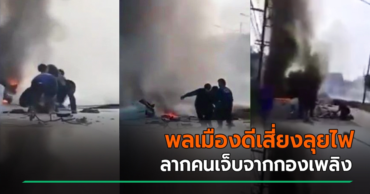 นาทีพลเมืองดี เอาชีวิตเข้าแลก ลากคนขับรถบรรทุกออกมาจากกองเพลิง สู้ตายแม้ไฟท่วม