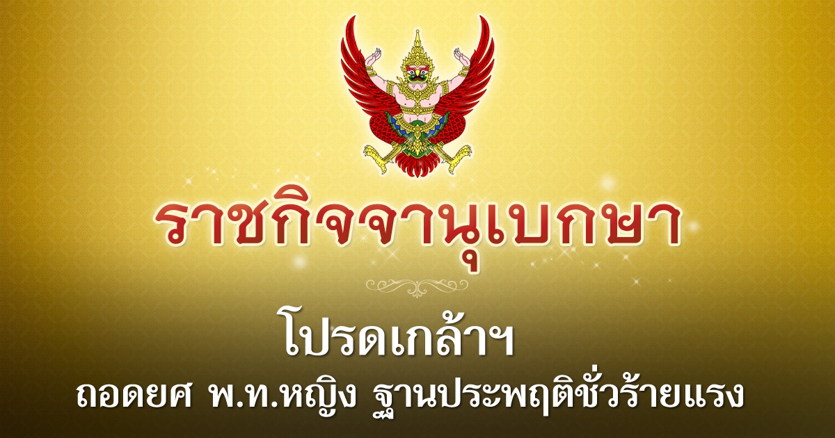 โปรดเกล้าฯ ถอดยศ พ.ท.หญิง ฐานประพฤติชั่วร้ายแรง เรียกคืนเครื่องราชอิสริยาภรณ์