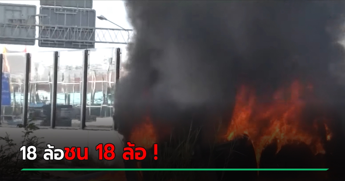 บิ๊กชนบิ๊ก พ่วง 18 ล้อชนกันบนมอเตอร์เวย์ ไฟลุกท่วม คนขับติดซากถูกช่วยรอดหวุดหวิด