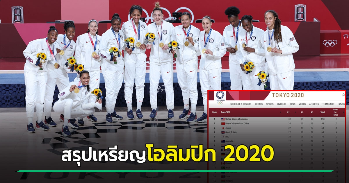 ปิดฉากแล้ว ! สรุปเหรียญโอลิมปิก 2020 สหรัฐฯ ครองเจ้าเหรียญทอง - ไทยจบอันดับ 59