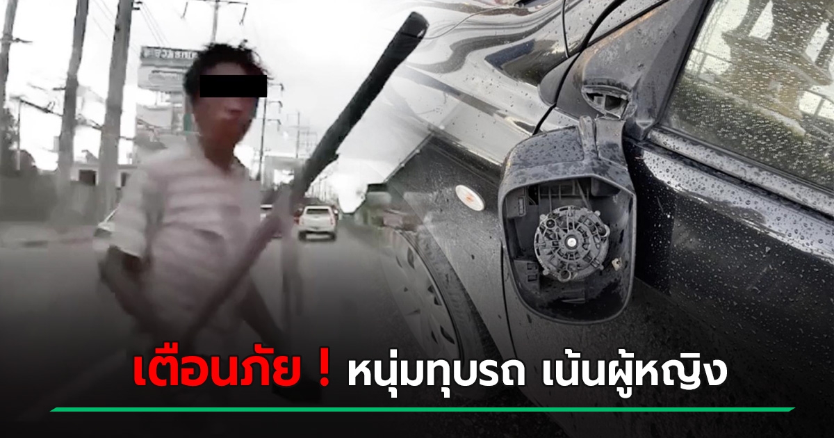 หนุ่มทุบรถ เน้นคนขับผู้หญิง ชะลอให้นึกว่าจะข้ามถนน ที่ไหนได้...ใช้ไม้ฟาดไม่ยั้ง