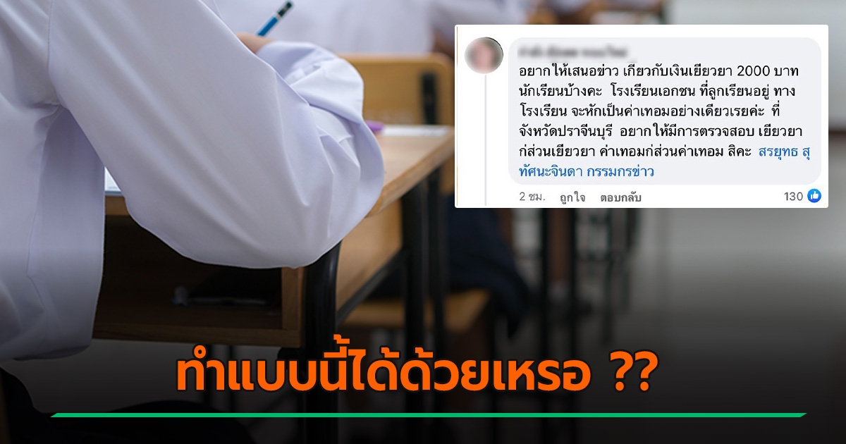 ร้อง รร. หักเงินเยียวยา 2,000 บาท เป็นค่าเทอม ผู้ปกครองลั่นแบบนี้ไม่ถูกต้อง