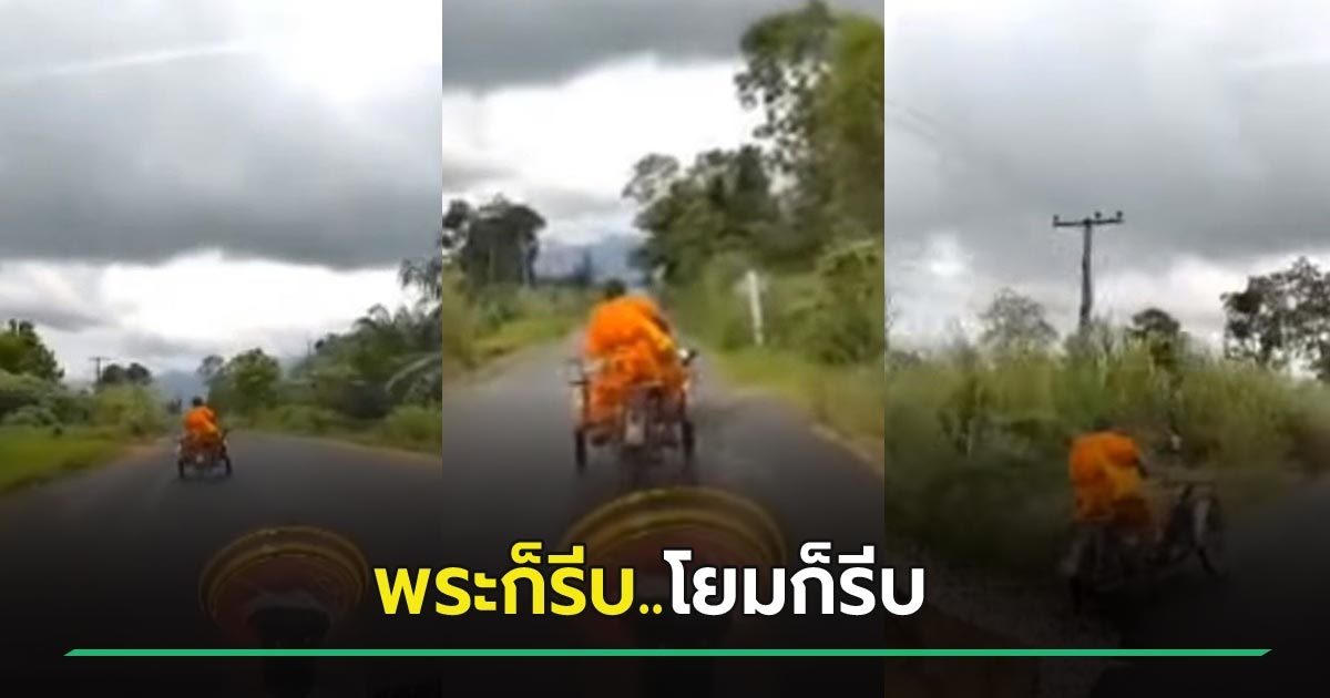 คลิปหลวงพี่ซิ่งซาเล้งกลางถนน ตกใจเสียงแตรรถเซไปเซมา โยมขับตามหลังใจหายวาบ