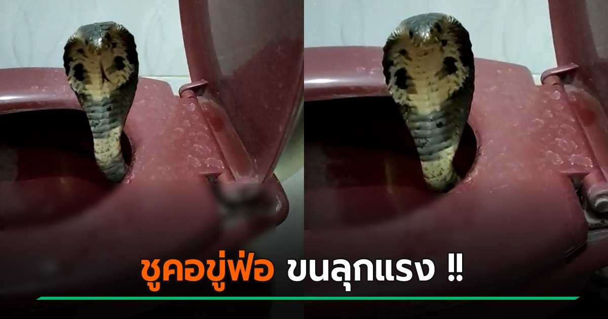 สะดุ้งโหยง ! งูเห่าโผล่ชูคอจากชักโครก แลบลิ้นขู่ฟ่อ ทักทายแบบนี้ หัวใจจะวาย