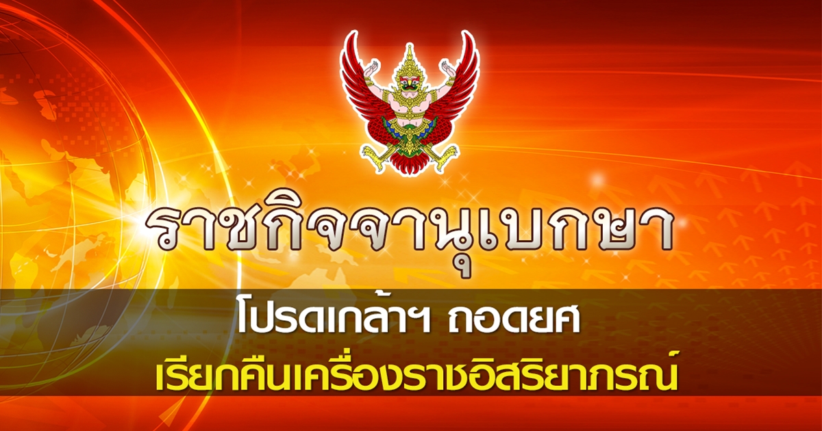 โปรดเกล้าฯ ถอดยศ เรียกคืนเครื่องราชอิสริยาภรณ์ 5 ขรก. ใน 4 หน่วยงาน รวม อัญญะรัฐ เอ่งฉ้วน