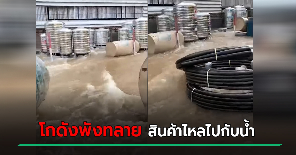 นาทีน้ำท่วมหนัก โกดังโกลบอลเฮ้าส์ ชัยภูมิ โดนของพัดกระจาย สินค้าไหลไปกับสายน้ำ