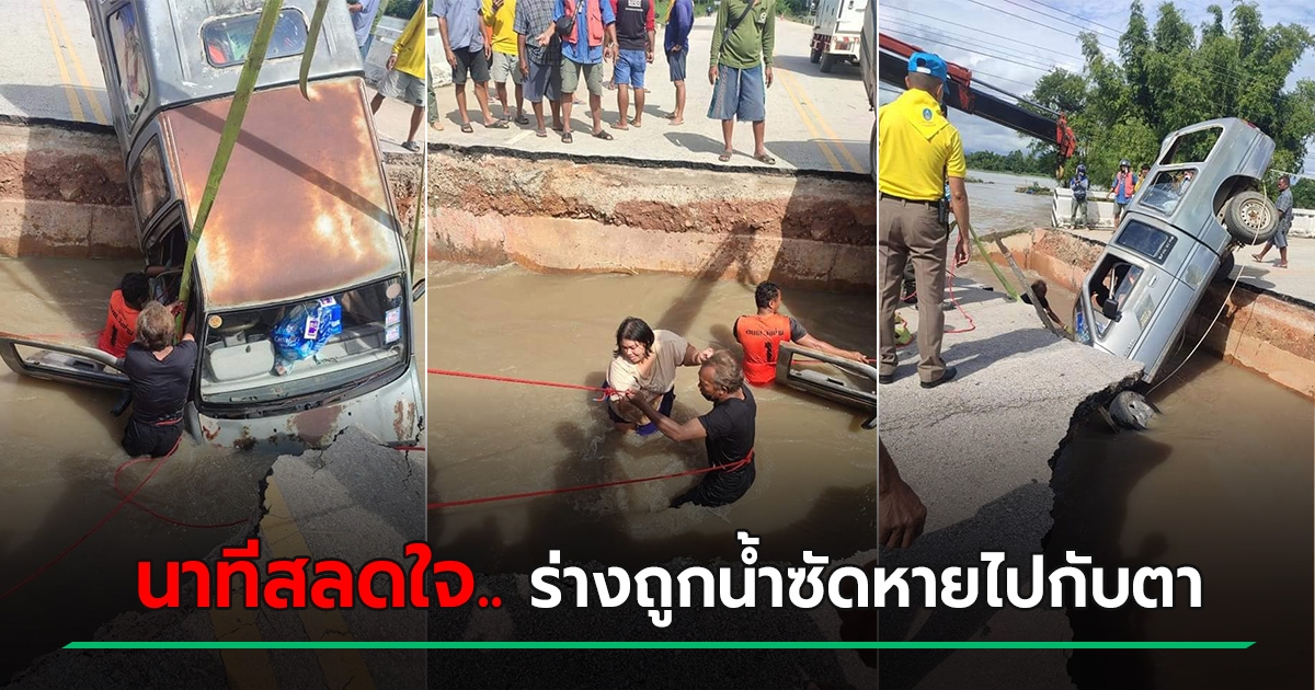 หญิงซิ่งรถรีบพาแม่ไปหาหมอ ไม่รู้สะพานขาด-รถตกน้ำ สุดท้ายแม่ตาย ตัวเองหายไปกับน้ำ