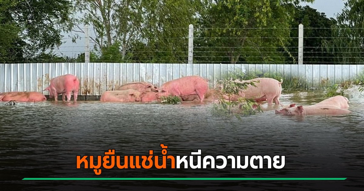 สงสารน้อง...น้ำท่วมอ่วมฟาร์มหมู 8,000 ตัว หนีตายยืนแช่น้ำหวังรอดชีวิต-ตายลอยเหม็นคลุ้ง
