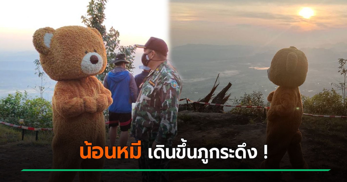 หนุ่มแต่งชุดหมีเดินขึ้นภูกระดึง เคยอธิษฐานขอพรจนหายป่วยมะเร็งระยะสุดท้าย