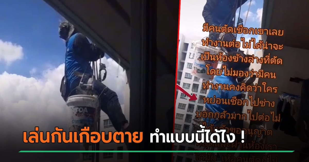 ใจทำด้วยอะไร ! นาทีช่างทาสีหนีตาย ขอผ่านห้องคนในคอนโด เหตุถูกมือปริศนาตัดเชือกจนขาด