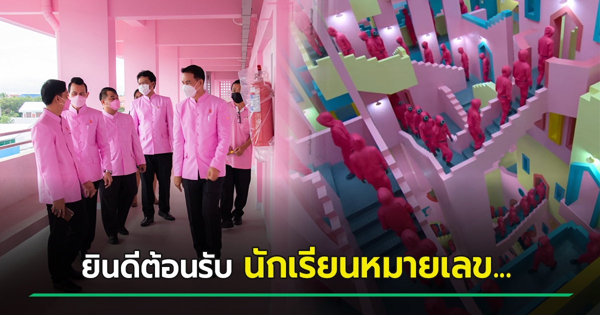 ฮือฮา ! โรงเรียนลงภาพ ผอ. ตรวจตึกใหม่ มองไปทางไหนก็สีชมพู - เจอแซวมาในธีม Squid Game ?