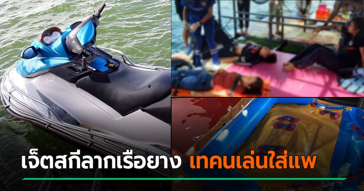ช็อกทั้งเขื่อน คนขับมือใหม่ ขี่เจ็ตสกีลากเรือยาง เหวี่ยงคนเล่นเทกระจาดใส่แพ เจ็บระนาว