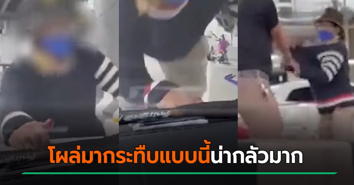 สาวติดไฟแดงอยู่ดี ๆ เจอคนเมากาวบุกถึงหน้ารถ ปีนกระโปรงกระทืบกระจก น่ากลัวสุด