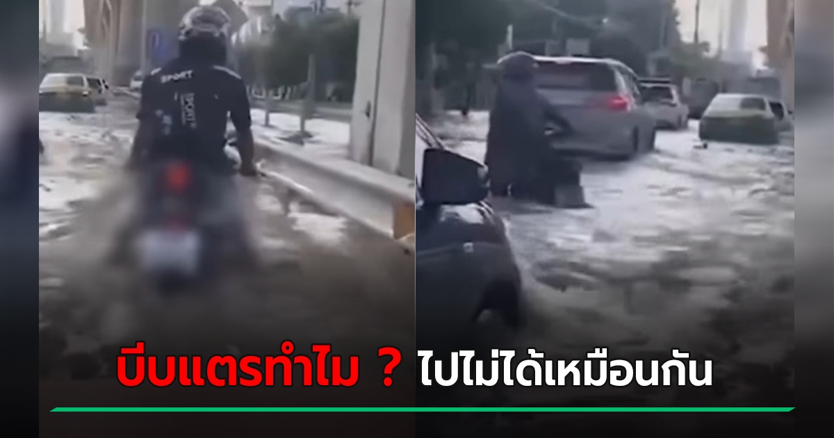 ดราม่า ! ฝนตก-น้ำท่วม-รถติด แต่รถยนต์มาบีบแตรไล่ จยย. ให้รีบไป เอาตรงไหนมาไปก่อน