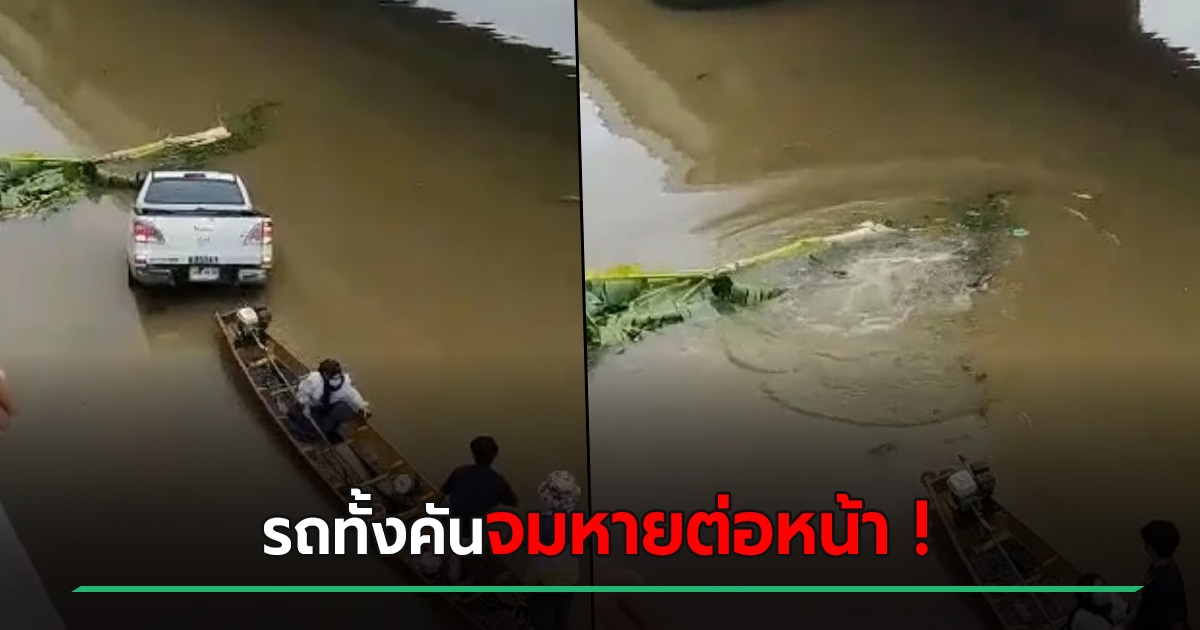นาทีเฉียดตาย กระบะเสียหลักพุ่งลงคลอง แป๊บเดียวจมทั้งคัน สองผัวเมียหนีทันหวุดหวิด