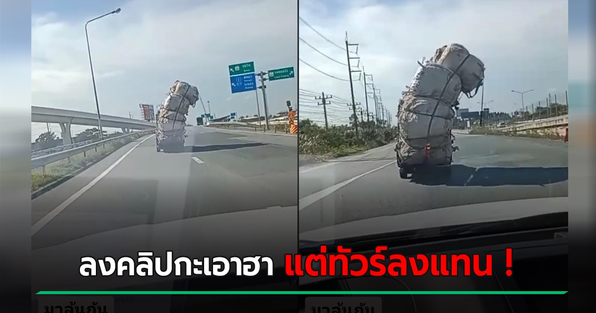 หนุ่มอัดคลิปขำขัน รถปิกอัพแบกของเอียงกระเท่เร่ พากย์กันสนุกแต่ทัวร์ลง คดีพลิกเลย