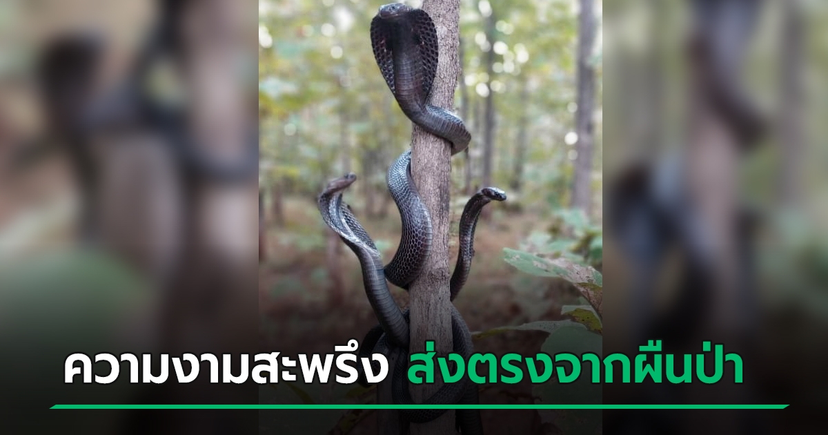 เปิดภาพตะลึง งูเห่า 3 ตัวพันเลื้อยต้นไม้เดียวกัน ชูคอสลอน ความงดงามที่น่าหวาดหวั่น