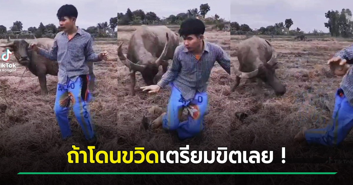หนุ่มได้ฟีล อัดคลิปเต้นกลางทุ่งนา แต่ดูเหมือนน้องควายไม่เอาด้วย เจอแบบนี้โกยแทบไม่ทัน !