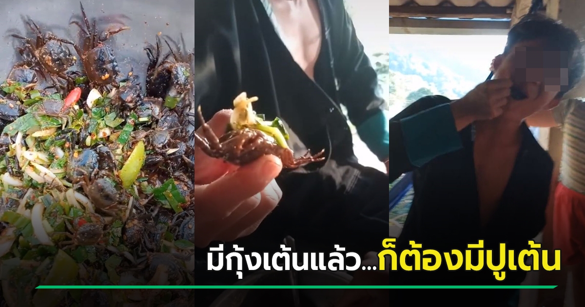 เปิบพิสดาร ! ยำปูเต้น เอาปูนาเป็น ๆ คลุกเครื่องแซ่บตักเข้าปาก โอย..หนีบยันหลอดอาหาร