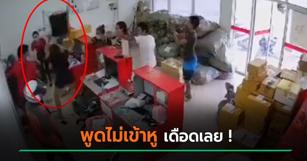 คลิปเดือด แก๊งลูกค้ายกพวกรุมตบ-ยกเก้าอี้ฟาด พนักงานขนส่งพัสดุ ฉุนพูดจาไม่เข้าหู