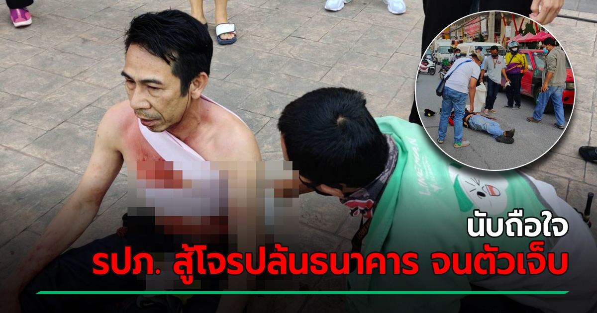 แห่ยกย่อง รปภ. ฮีโร่ สู้โจรปล้นธนาคารจนถูกแทงเจ็บ ส่วนคนร้ายถูกแทงสวนดับกลางถนน