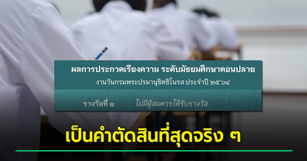 ประกวดเขียนเรียงความ ม.ปลาย ไร้ผู้ชนะอันดับ 1 กับเหตุผลสุดตรง ถึงกับอึ้งเลย !