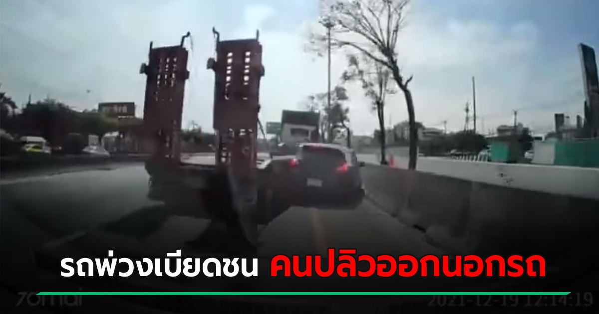 คลิปนาทีช็อก ! รถพ่วงหักเลี้ยวเบียดเก๋ง ซัดชนขอบทางกระจุย แม่ลูกปลิวออกนอกรถ