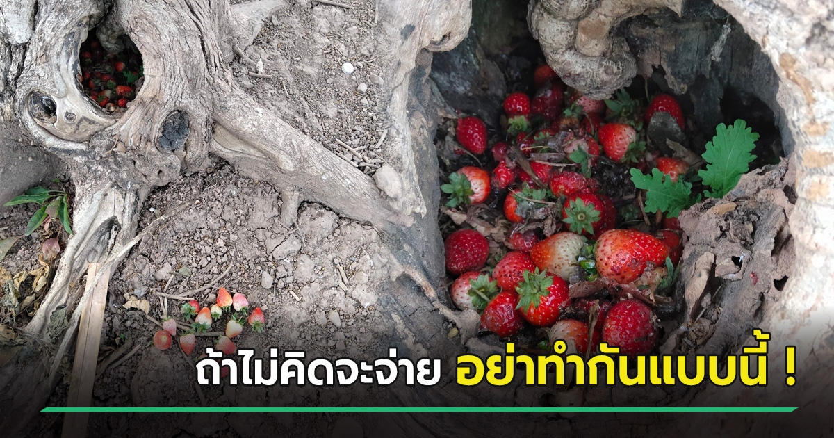 เก็บสตรอว์เบอร์รีแต่ไม่อยากจ่ายเงิน แอบซุกทิ้งตอไม้ เศรษฐกิจแบบนี้ยังทำกันลง !