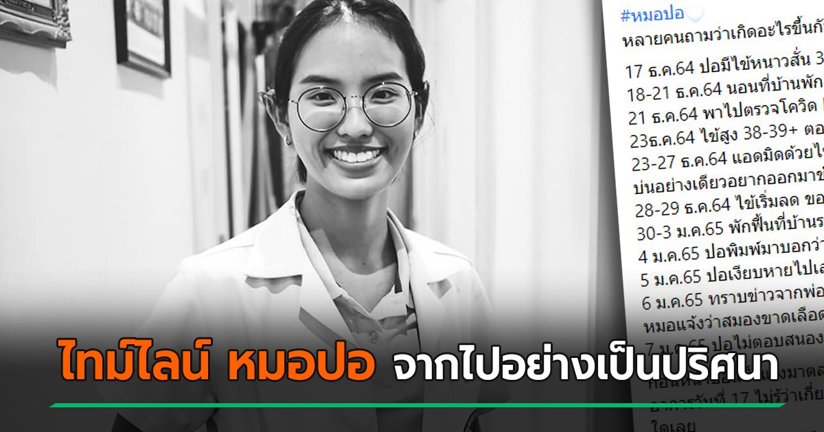 ไทม์ไลน์ หมอปอ ก่อนเสียชีวิตปริศนา บอกเพื่อนความดันต่ำมาก โซเชียลร่วมอาลัย