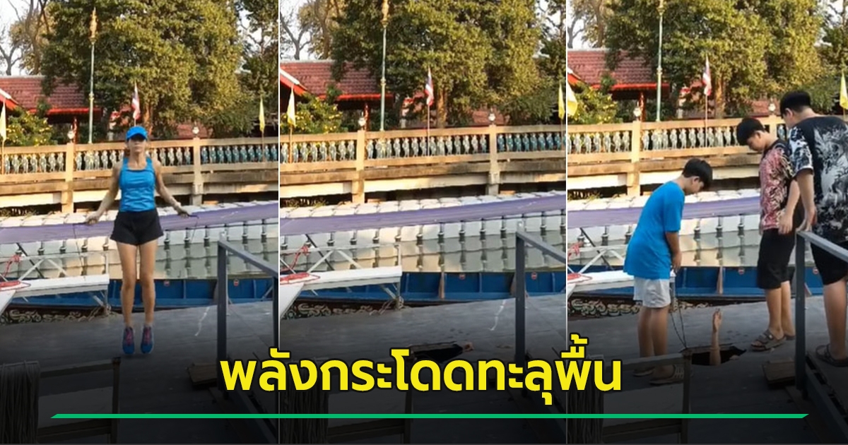 ไวรัล สาวกระโดดเชือกโชว์สตรอง อยู่ดี ๆ หายวับทั้งตัว พื้นพังทะลุเบื้องล่าง