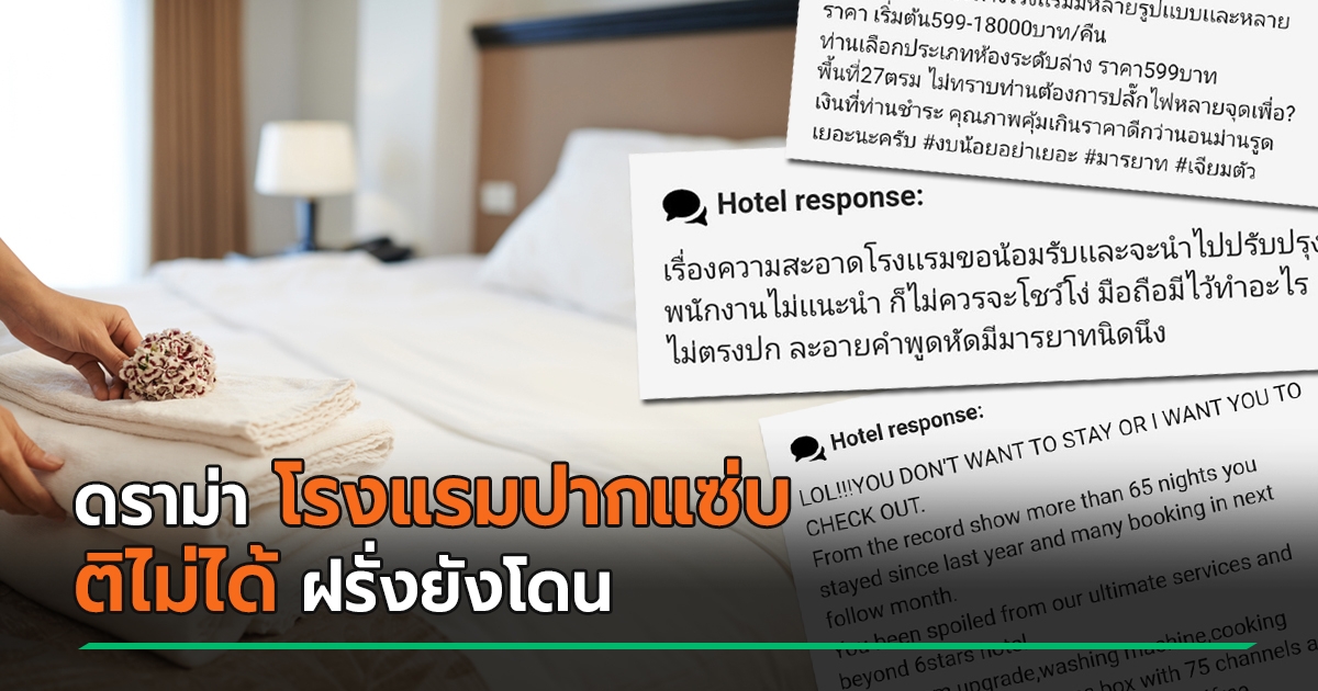 ดราม่าโรงแรมปากแซ่บ ลูกค้าโวยห้องสกปรก ด่าคืนไม่ควรโชว์โง่ ดีกว่านอนม่านรูด ฝรั่งยังโดน