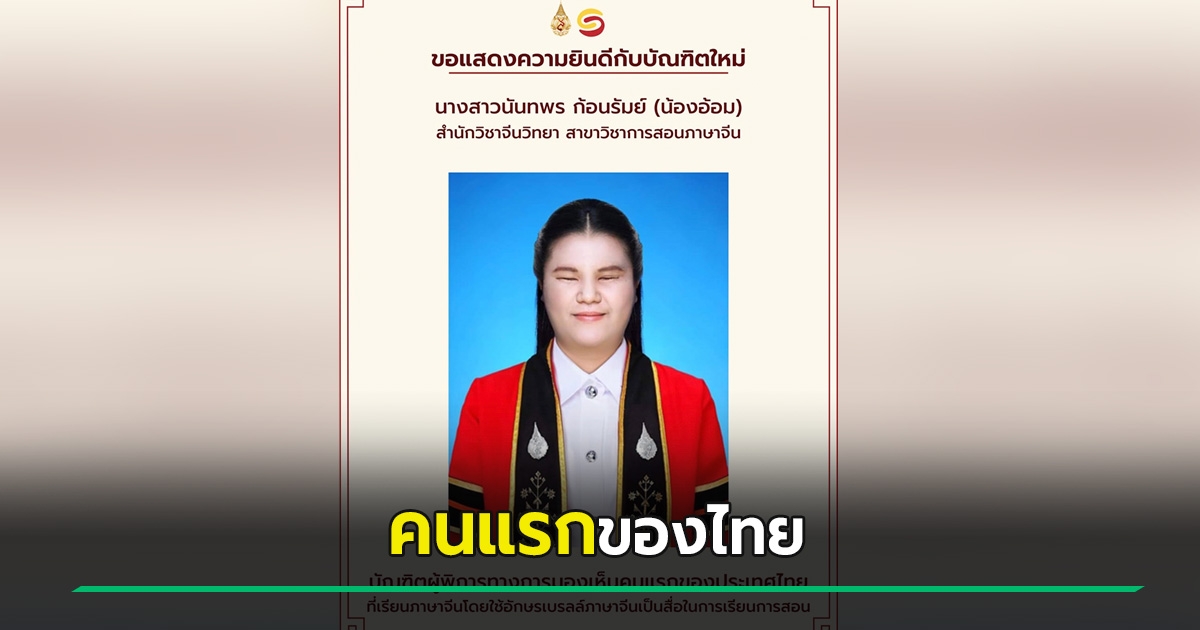 คนแรกของไทย ! น้องอ้อม บัณฑิตพิการทางการมองเห็น เรียนจบเอกจีนโดยใช้อักษรเบรลล์