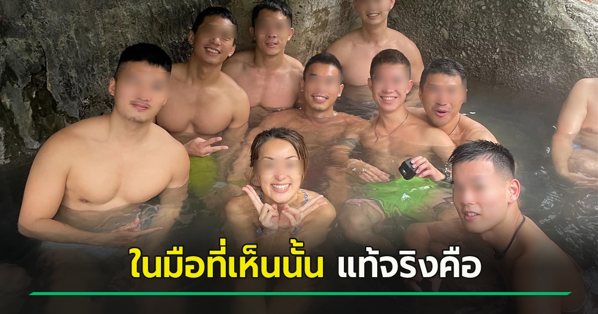 สาวลงแช่น้ำพร้อม 8 หนุ่ม ภาพธรรมดาดันเป็นไวรัล คนหลุดโฟกัส ในมือพี่คืออะไร ?