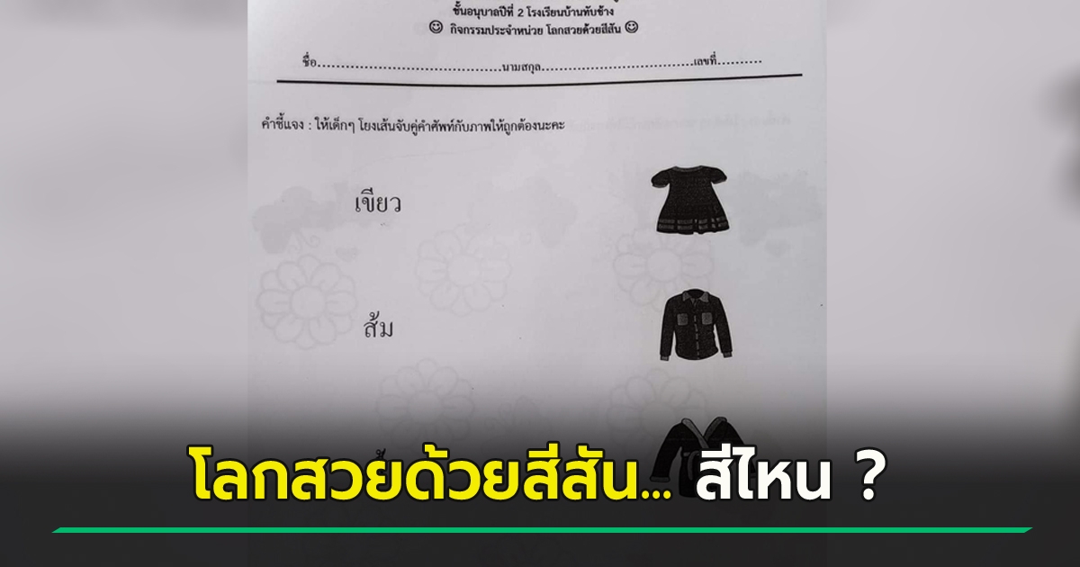 มึนตึ้บ การบ้านอนุบาล 2 ให้จับคู่ภาพเสื้อผ้ากับสี มาแบบนี้... ตอบยังไงให้ถูก !?