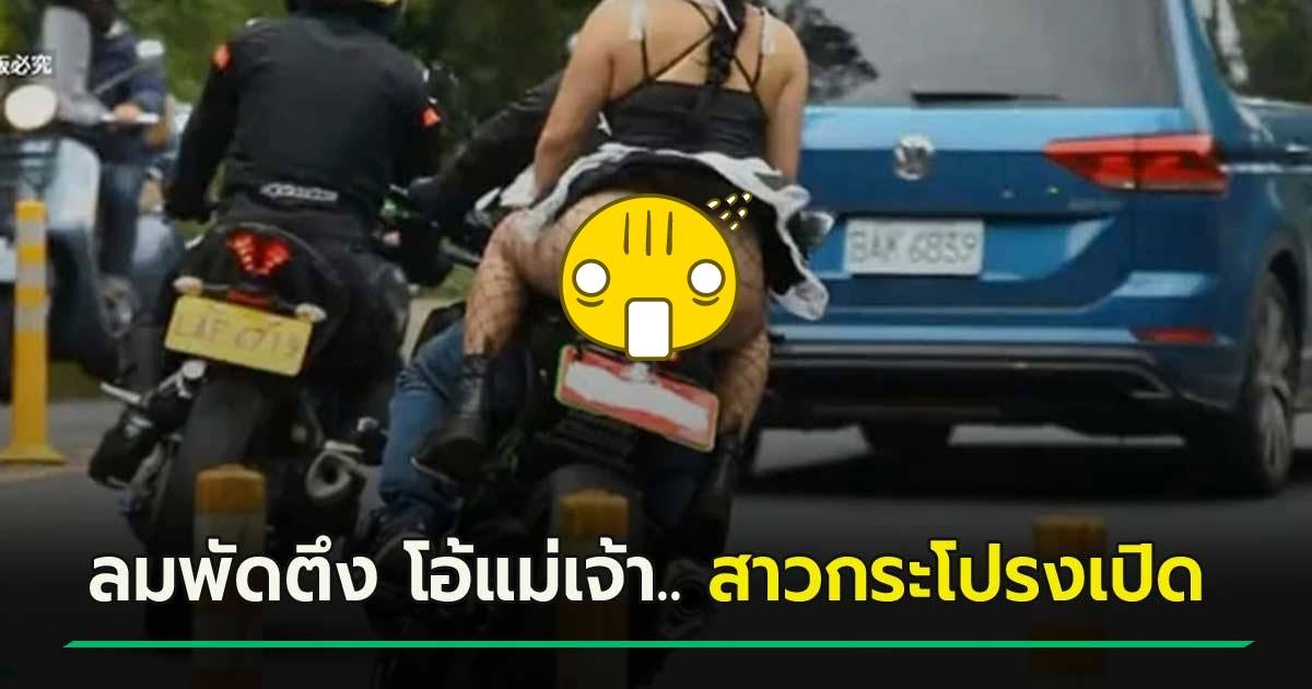 สาวซ้อนบิ๊กไบค์รับลม กระโปรงปลิวบั้นท้ายเปิด กระแทกเต็มตา รถตามหลังมาแทบล้ม