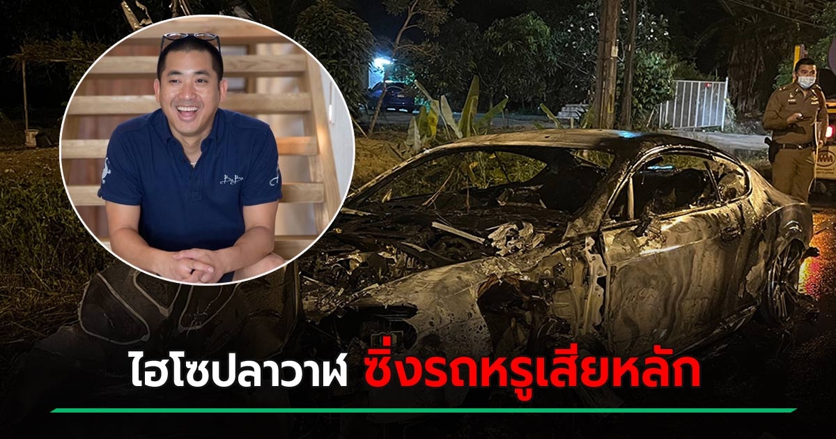 ไฮโซปลาวาฬ อิสสระ ซิ่งรถหรู Bentley เสียหลักชนการ์ดเลน ไฟไหม้วอดทั้งคัน !