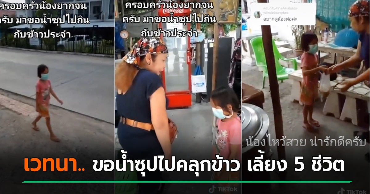 น่าสงสาร หนูน้อยขอน้ำซุปเหลือร้านก๋วยเตี๋ยว เอาไปคลุกข้าวกิน..ประทังชีวิต 5 คน