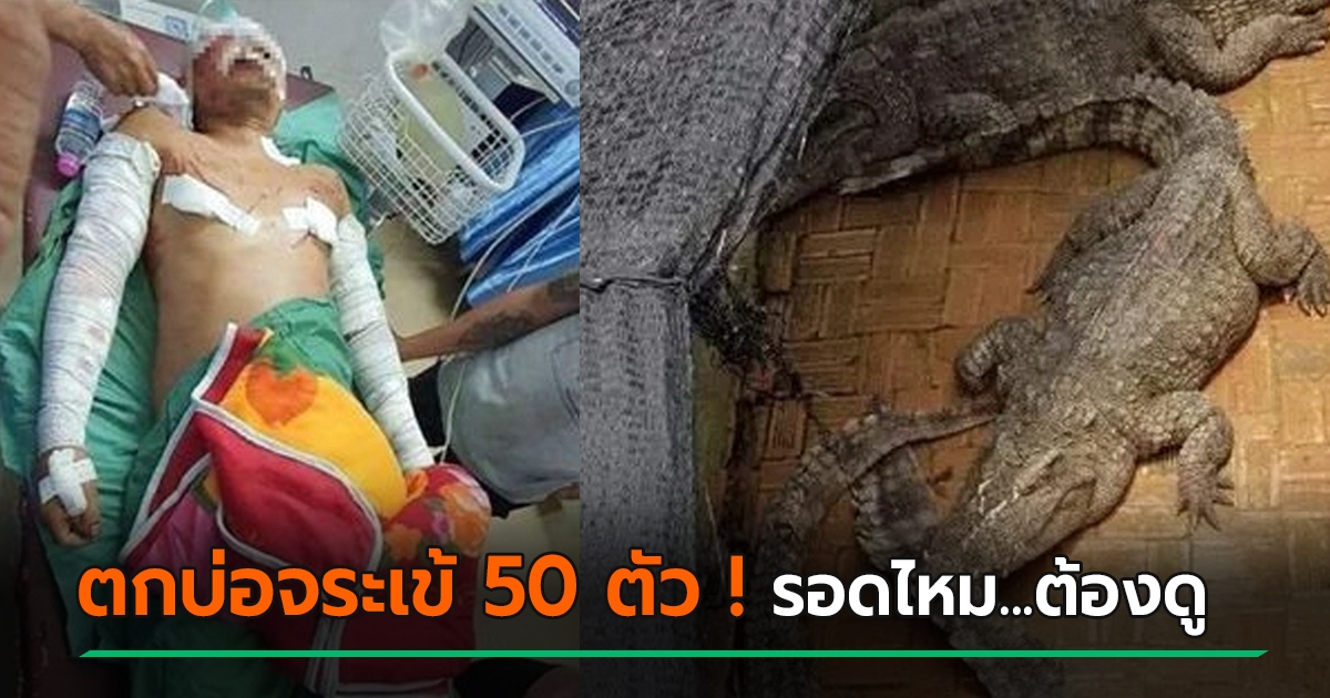 ช็อก !! ชายเดินเข้าห้องน้ำ พลัดตกบ่อจระเข้ 50 ตัว โดนรุมล้อมกัดทั่วร่าง รอดไม่รอดต้องดู