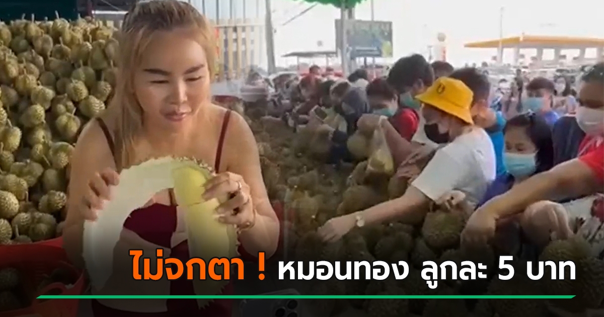 แม่ค้าใจดี ขายทุเรียนเหมือนแจกฟรี ลูกละ 5 บาท คนต่อคิวซื้อ 5,000 ลูก หมดเกลี้ยง