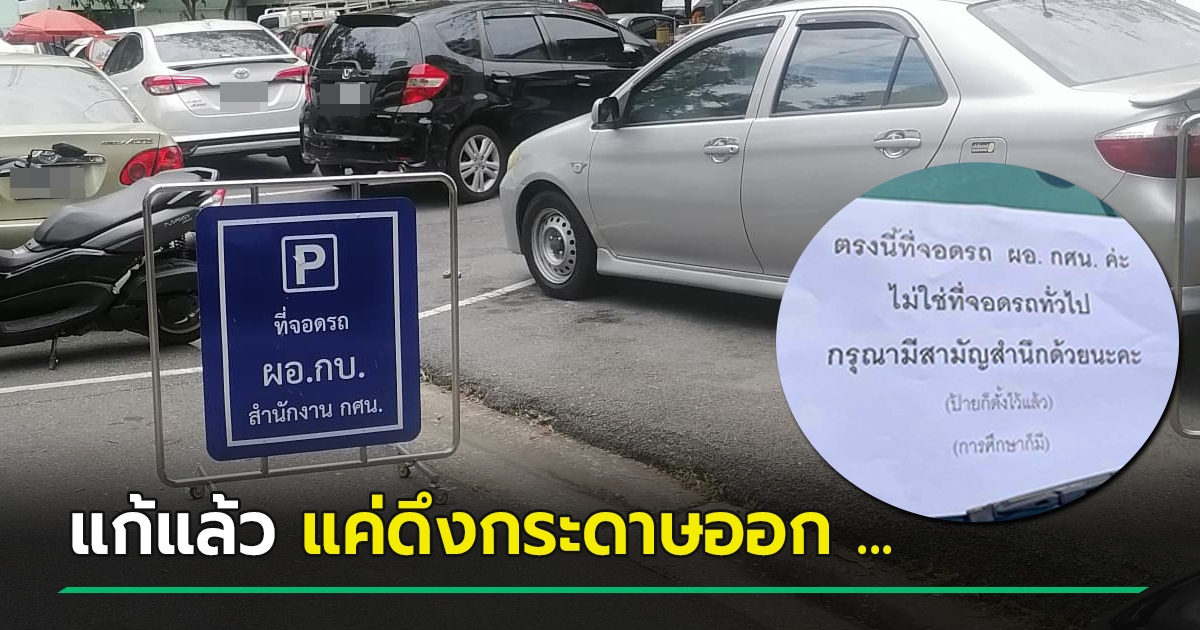 ภาคต่อดราม่า ที่จอดรถ ผอ.กศน. เปิดศึกติดกระดาษด่ากัน แต่ป้ายยังอยู่แม้ข่าวดัง