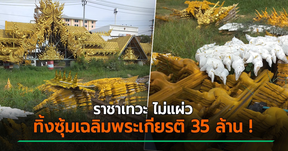 อบต.ราชาเทวะ ไม่มีแผ่ว ทิ้งซุ้มสะพานลอยเฉลิมพระเกียรติ 35 ล้าน หมดสภาพกองไว้ริมทาง