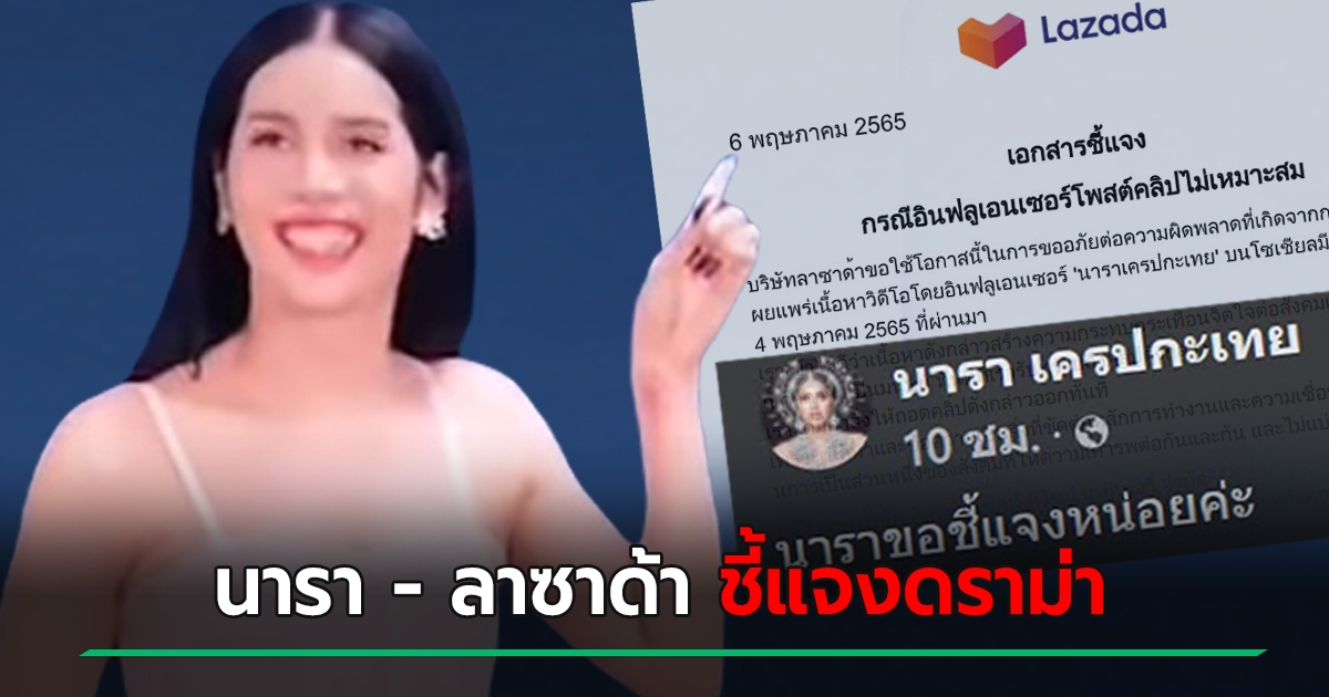 นารา เครปกะเทย แจงดราม่า ย้ำไร้เจตนาล้อเลียน - ลาซาด้า ขอโทษตรวจสอบไม่รอบคอบ
