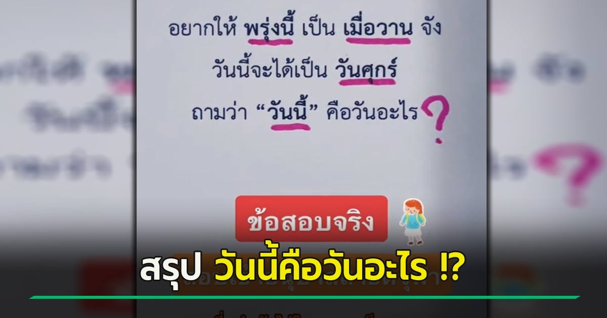 เฉลยโจทย์ อยากให้พรุ่งนี้เป็นเมื่อวาน คำถามนี้กลับมาอีกครั้ง มาสั้น ๆ แต่หัวจะปวด !