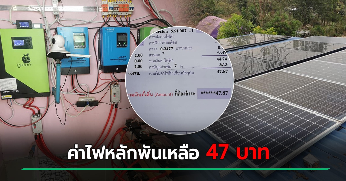 ค่าไฟเหลือ 47 บาท ! ติดโซลาร์เซลล์ประหยัดไฟ เปิดแอร์ 4 ตัวจุก ๆ กลางวัน - กลางคืน